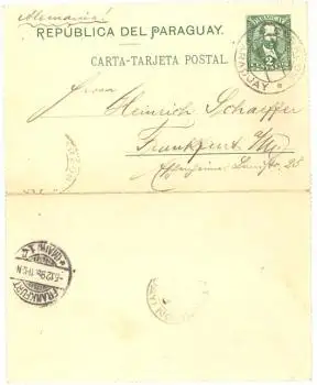 Parauay Ganzsache Kartenbrief o 31.10.1899 nach Frankfurt