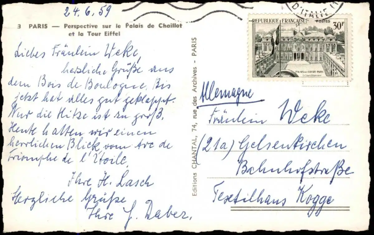 Paris Perspective sur le Palais de Chaillot et la Tour Eiffel 1959