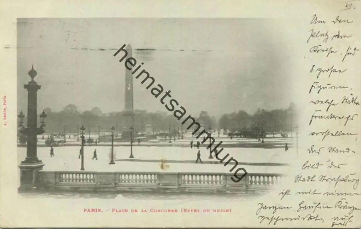 Paris - Place de la Concorde (effet de neige) - Edition A. Taride Paris - Flaggenstempel gel. 1900