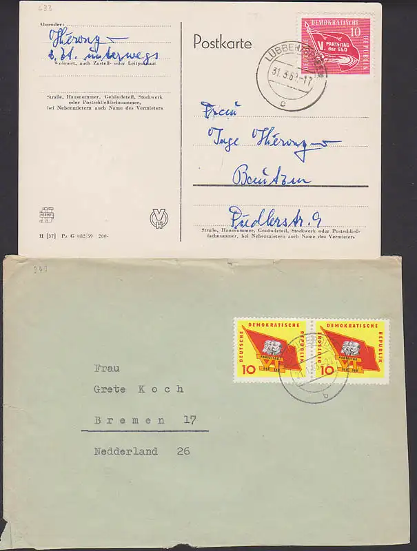 Parteitage der SED (633, 941) auf Karte bzw. Brief