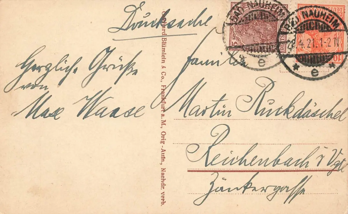 Original Postkarte Maße 9 x 14 cm Rückseite: gelaufen 1921 Zustand: gute Erhaltung
