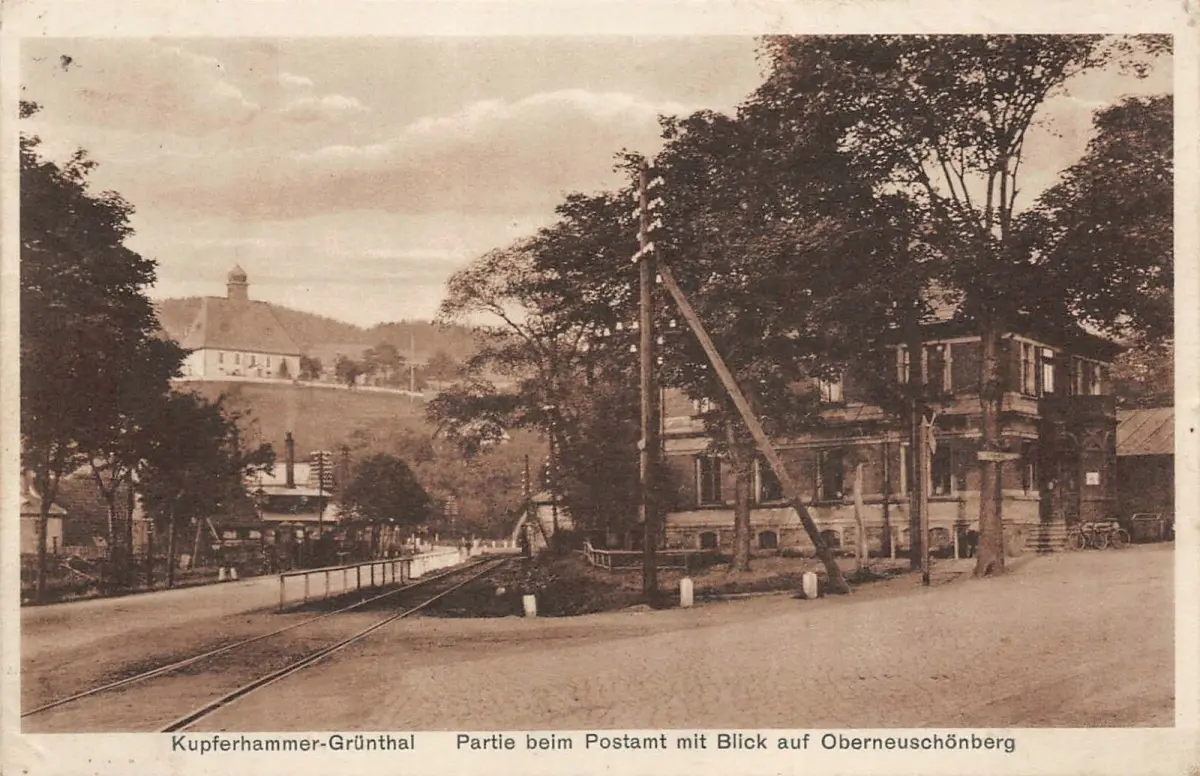 Partie beim Postamt mit Blick auf Oberneuschönberg Kupferhammer Sachsen AK 1933