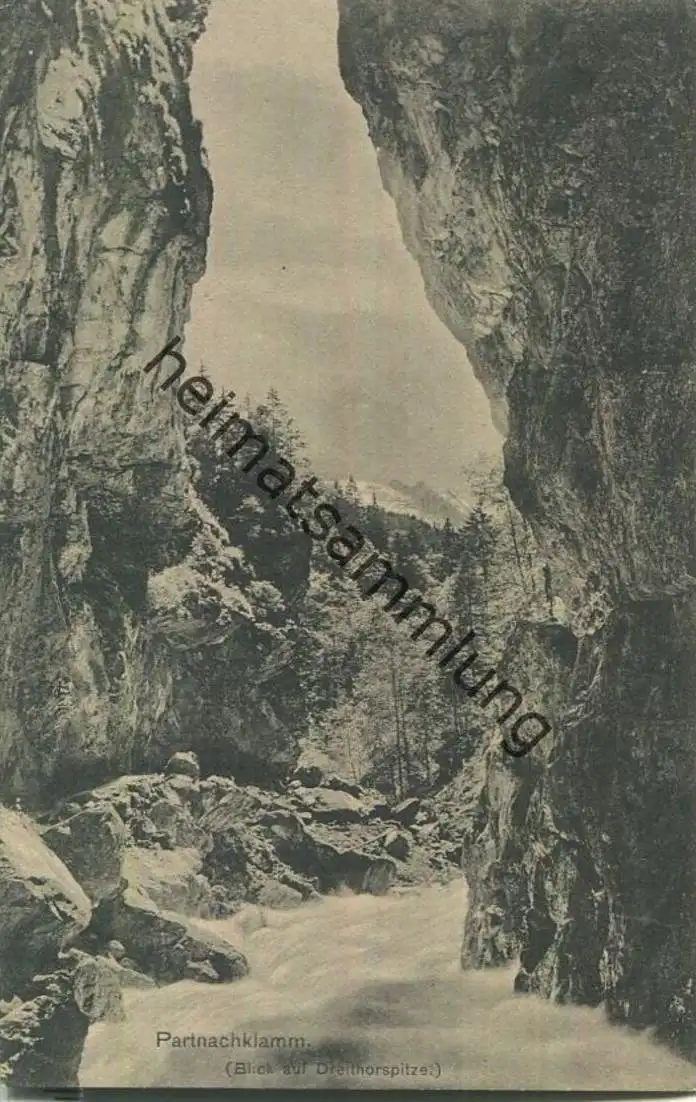 Partnachklamm - Blick auf Dreithorspitze - Verlag B. Johannes (Max Beckert) Partenkirchen-Garmisch