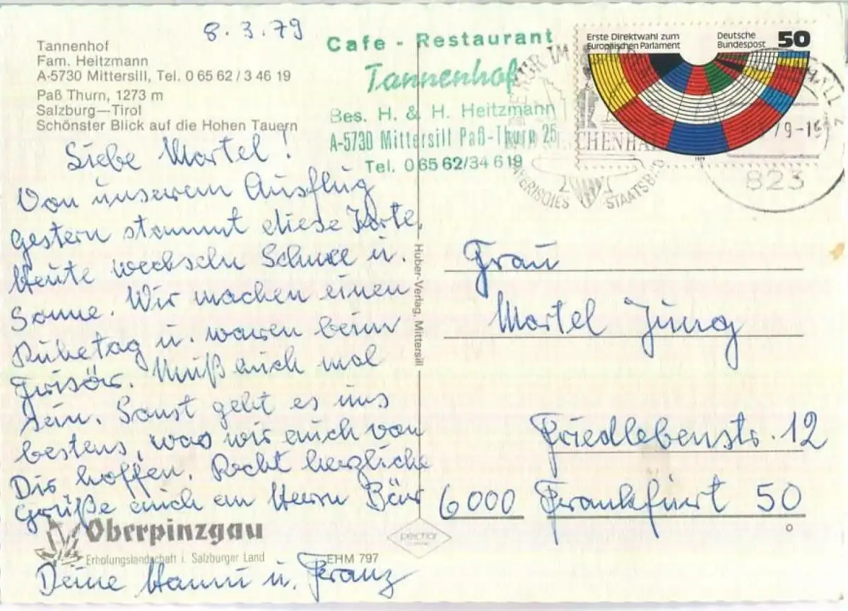Pass Thurn - Cafe-Restaurant Tannenhof - Besitzer Fam. Heitzmann Mittersill - VW-Bus - Huber-Verlag Mittersill (E96329) gel. 1979