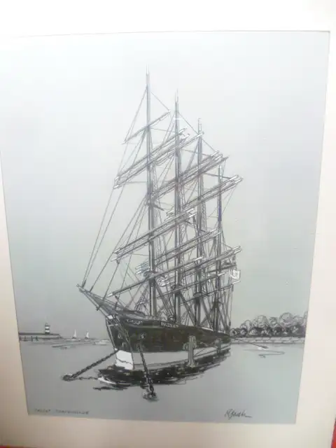 Passat am Liegeplatz in Travemünde Mischtechnik : Kohle in Weißhöhung