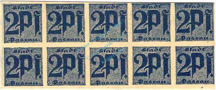 Passau , Notgeld 10 x 2 Pfennig unc-kfr. Ti.5515.05.70 , Sachsen o.D. Verkehrsausgabe
