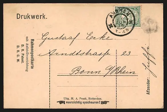 gelaufen 1905, Bugspuren oben re., guter Zustand