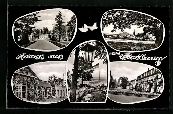 Passepartout-AK Bad Driburg, Strassenpartie, Kuranlage, Ortsansicht
