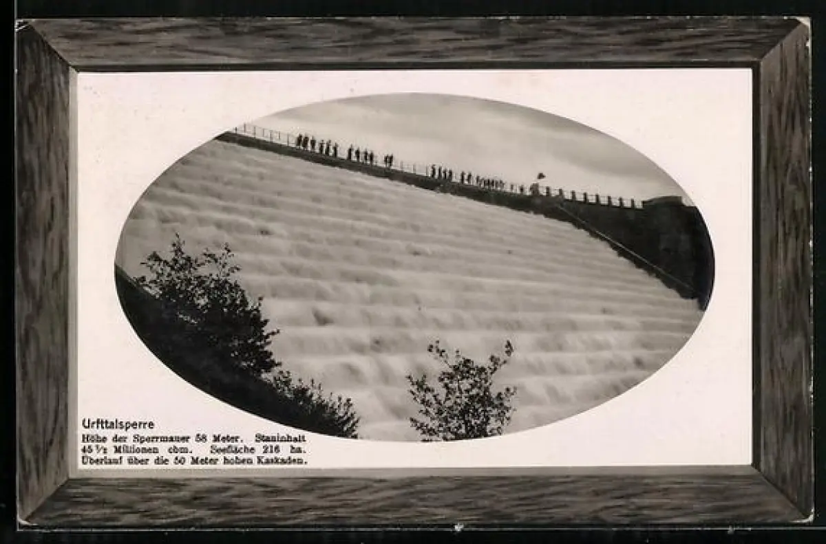 Passepartout-AK Gemünd / Eifel, Urfttalsperre in Holzrahmenoptik