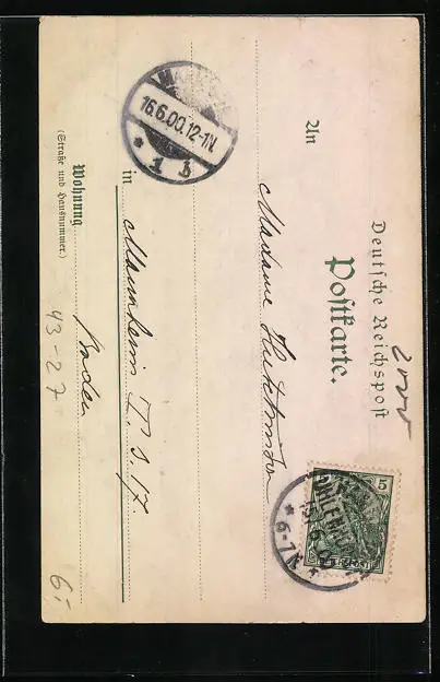 alte Ansichtskarte, gelaufen 1900, Eckknick unten re., minim. Randschaden re. oben, guter Zustand