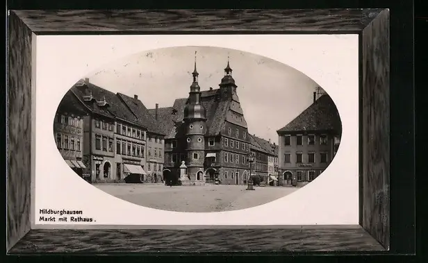 Passepartout-AK Hildburghausen, Markt mit Rathaus