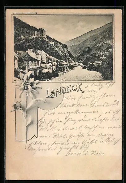 Passepartout-AK Landeck, Strassenpartie mit Burg, Edelweiss