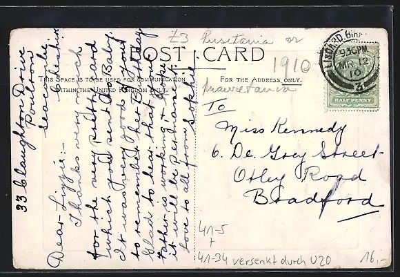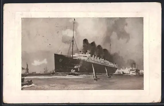 Passepartout-AK Passagierschiff R.M.S. Lusitania der Cunard Line, versenkt durch deutsches U-Boot U 20