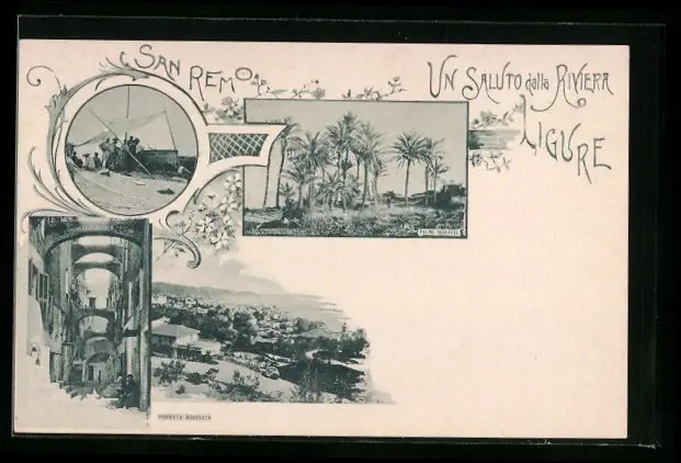 Passepartout-AK San Remo, Palme Scheffel, Gasse mit Brücken, Ortsansicht