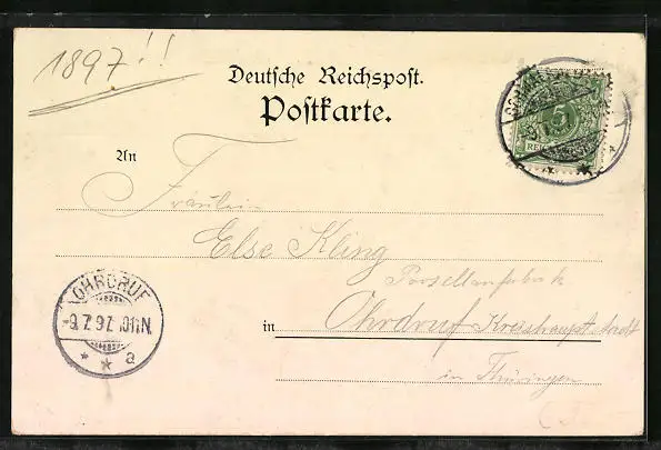 alte Ansichtskarte, gelaufen 1897, guter Zustand