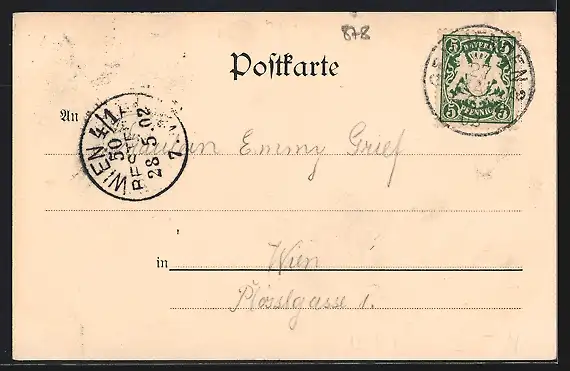 alte Ansichtskarte, gelaufen 1902, Eckknick re. oben, guter Zustand