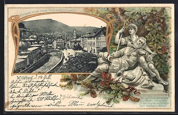 Passepartout-Lithographie Bad Wildbad, Ortsansicht mit Strassenpartie