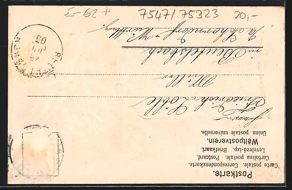 gelaufen 1905, Briefmarke entfernt, rückseitig Oberflächenschaden, guter Zustand