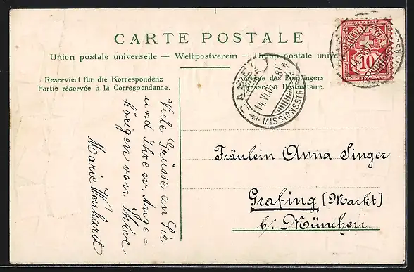 gelaufen 1907, Eckknick re. oben, Bugspur re. vertikal, guter Zustand