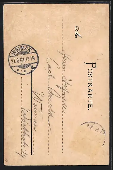 gelaufen 1901, Briefmarke entfernt, Eckknick re. oben, guter Zustand