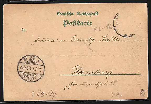 gelaufen 1901, Briefmarke entfernt, guter Zustand