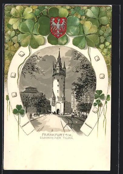 Passepartout-Lithographie Frankfurt /Main, Eschenheimer Turm, Kleeblätter, Hufeisen