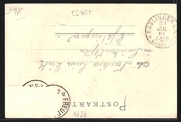 gelaufen 1901, Briefmarke entfernt, rückseitig Oberflächenschaden, guter Zustand