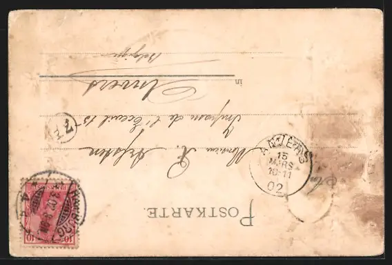 gelaufen 1902, Eckknicke unten u. re. oben, guter Zustand