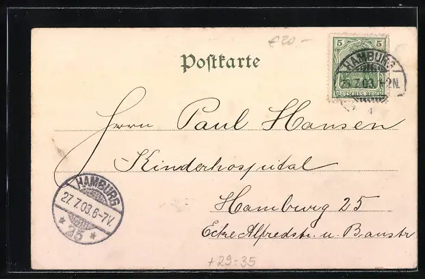 gelaufen 1903, Klebe- und Papierreste untere Ecken, guter Zustand