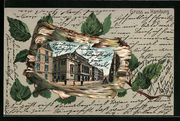 Passepartout-Lithographie Hamburg-Neustadt, Stadt-Theater dargestellt auf Holz