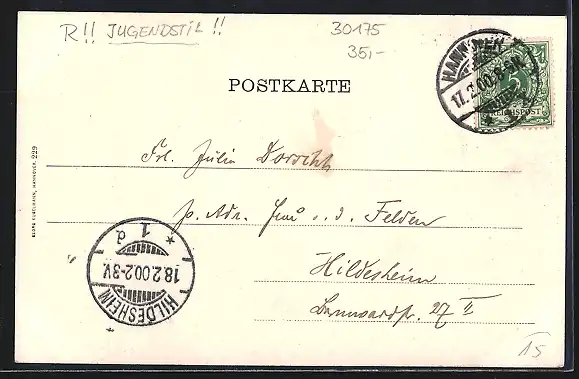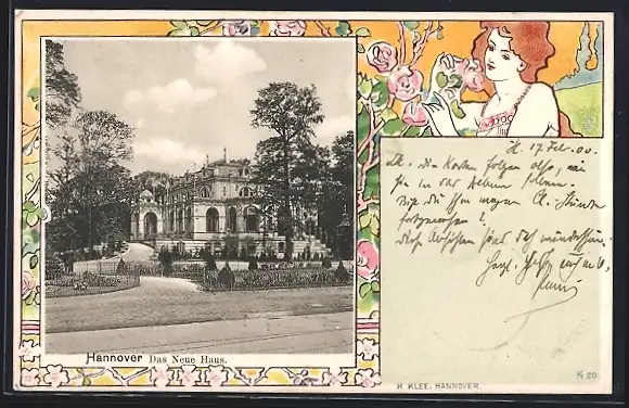 Passepartout-Lithographie Hannover, Das Neue Haus mit Jugendstilrahmen