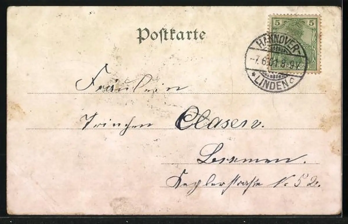 gelaufen 1901, Eckknick oben li., guter Zustand