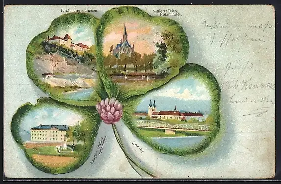 Passepartout-Lithographie Holzminden, Baugewerkschule im Kleeblatt