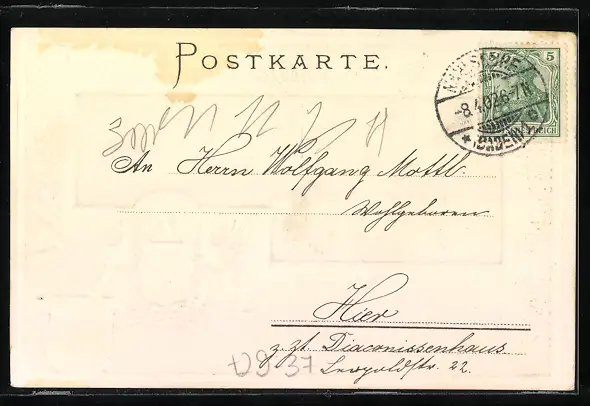 gelaufen 1902, Eckknick unten li., guter Zustand