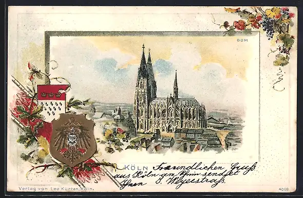 Passepartout-Lithographie Köln, Der Kölner Dom, Stadt-Wappen