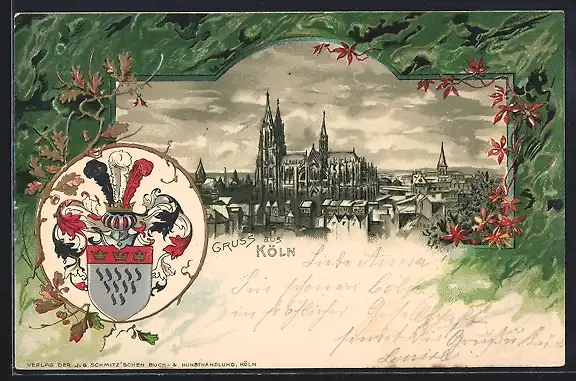 Passepartout-Lithographie Köln, Kölner Dom im Stadtbild, Stadt-Wappen