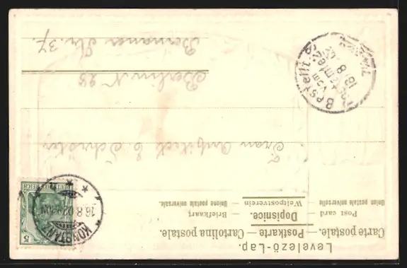 gelaufen 1902, Bugspur re. unten, Einriss re. oben, guter Zustand