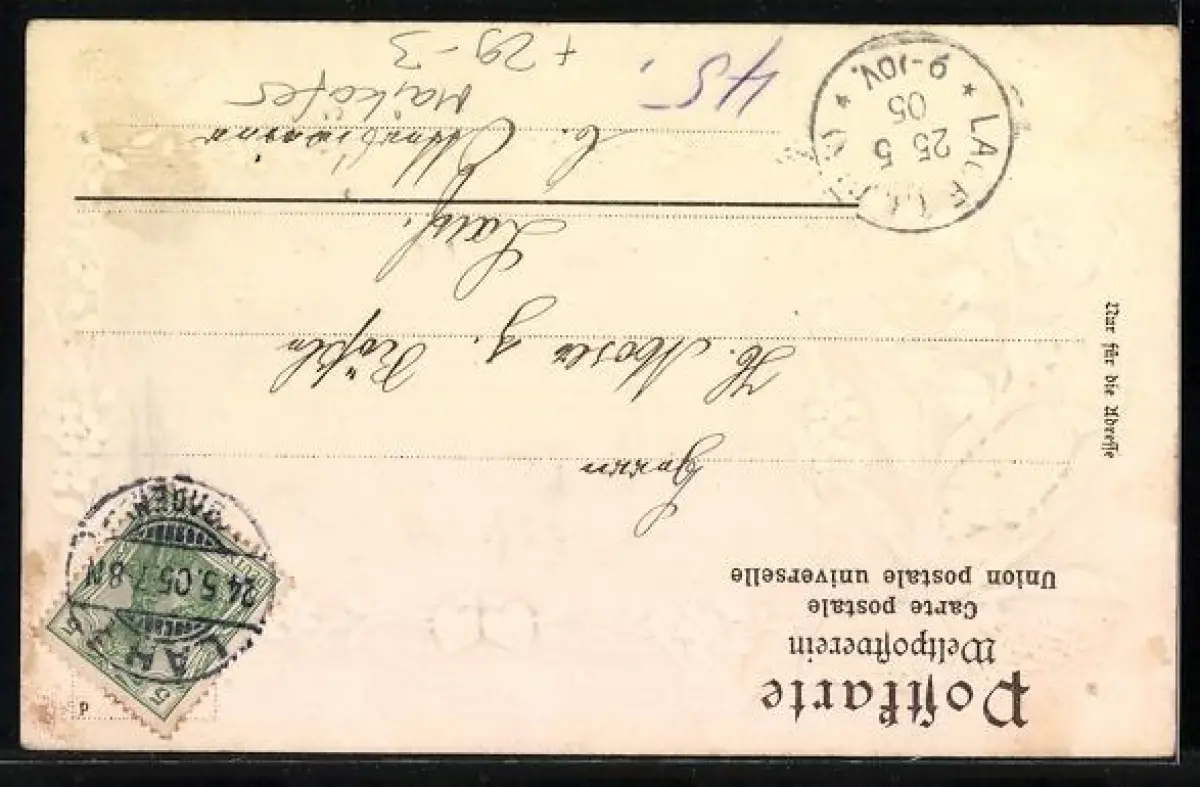gelaufen 1905, Eckknick links unten, guter Zustand