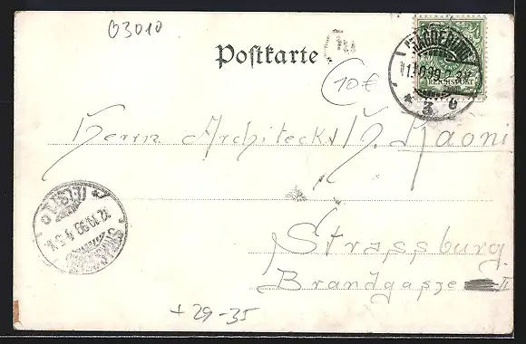 gelaufen 1899, Eckknick re. unten, rückseitig Oberflächenschaden, guter Zustand