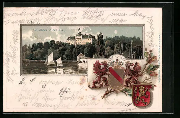 Passepartout-Lithographie Mainau, Schloss Mainau, Wappen