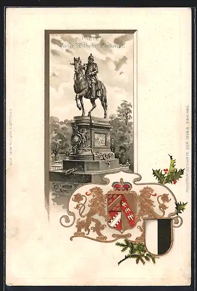 Passepartout-Lithographie Matz, Kaiser Wilhelm-Denkmal und Wappen