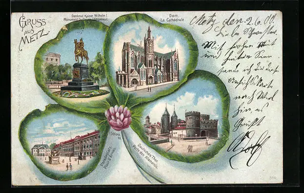 Passepartout-Lithographie Metz, Deutsches Thor, Dom, Denkmal Kaiser Wilhelm I., Paradeplatz, Kleeblatt