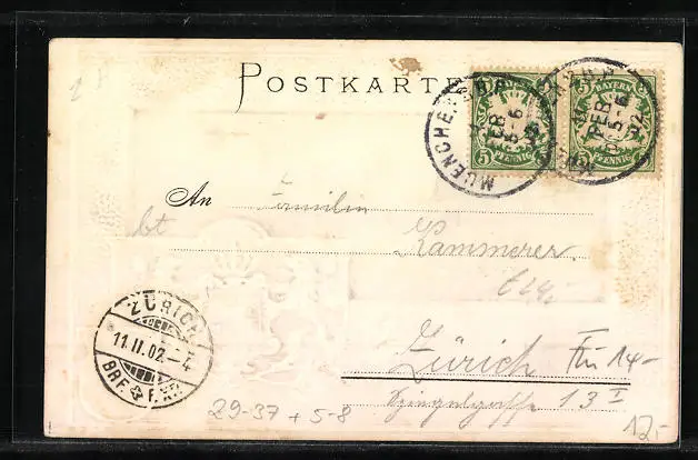 gelaufen 1902, Eckknick re. unten, guter Zustand
