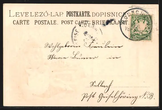gelaufen 1902, kleiner Einriss li. oben, guter Zustand