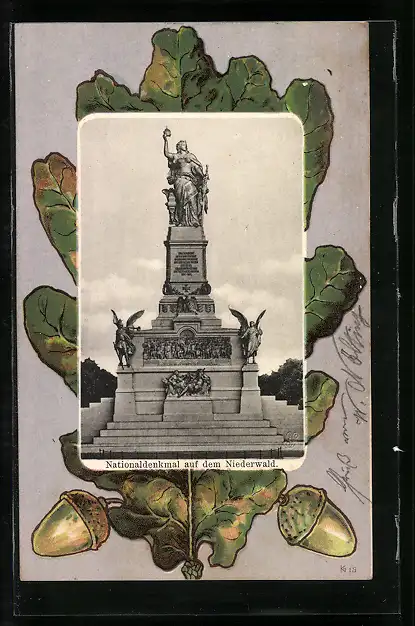Passepartout-Lithographie Niederwald-Nationaldenkmal, Eichenblatt mit Eicheln