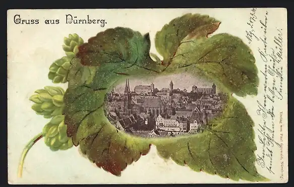 Passepartout-Lithographie Nürnberg, Teilansicht im Hopfenblatt