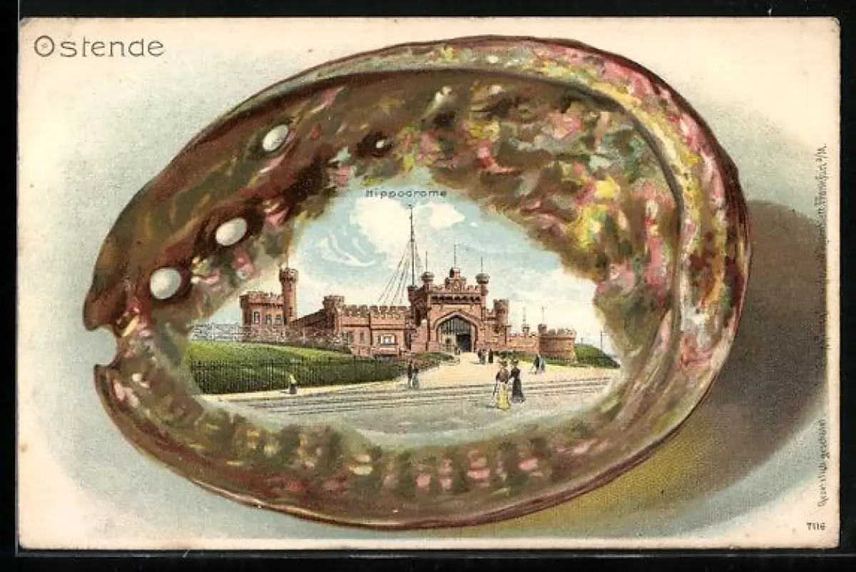 Passepartout-Lithographie Ostende, Hippodrome, Ansicht auf Muschel