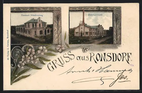 Passepartout-Lithographie Ronsdorf, Turnhalle Scheidtstiftung, Elektrizitätswerk, Blume