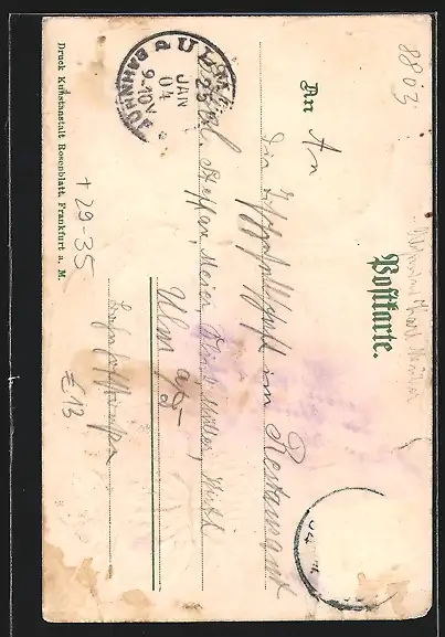 gelaufen 1904, Briefmarke entfernt, Eckschaden unten li, guter Zustand
