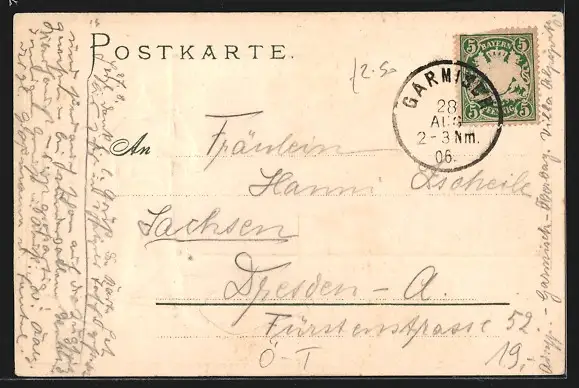 gelaufen 1906, Eckknick li. unten, guter Zustand